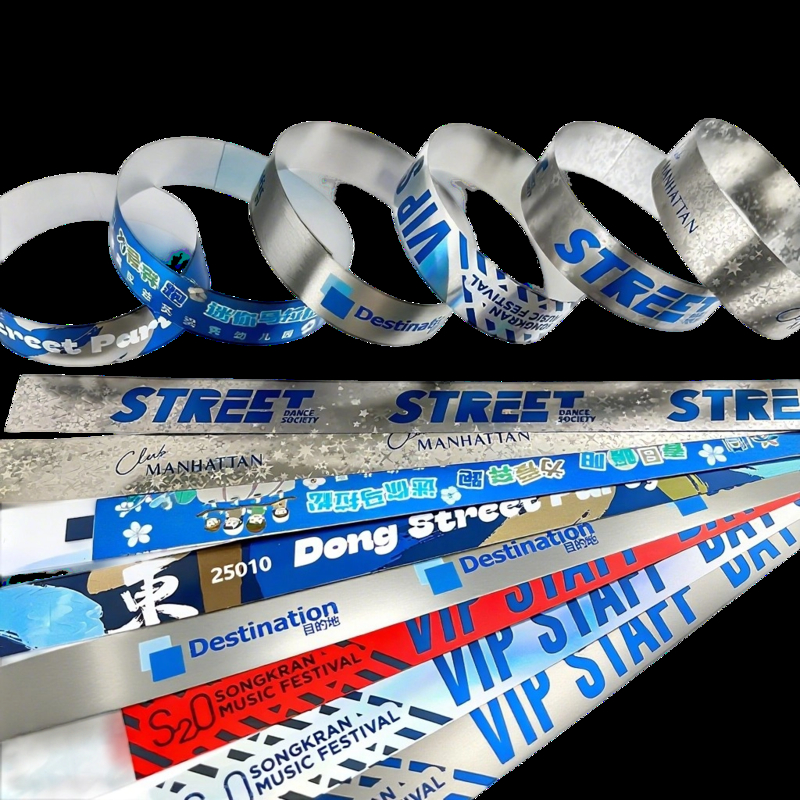 2. Концерты и музыкальные фестивали: Эти браслеты идеально подходят для использования в качестве входных билетов или VIP-пропусков на концертах и музыкальных фестивалях. Варианты лазерного цвета, включая серебро и золото, позволяют настраивать их в соответствии с темой мероприятия или фирменным стилем.